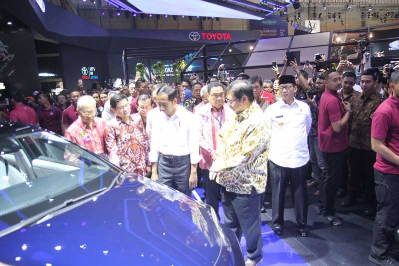 Toyota Mirai hadir di booth Toyota di GIIAS 2018 dan membuat banyak pengunjung penasaran dengan mobil ramah lingkungan ini.